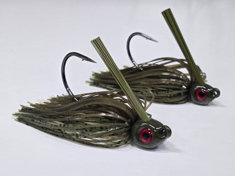 Our Premium swim jigs are built around a super sharp BKK hook, have life like realistic 3d eyes, Premium silicone skirt material and wire tied with 304 stainless steel wire to ensure durability and longevity.